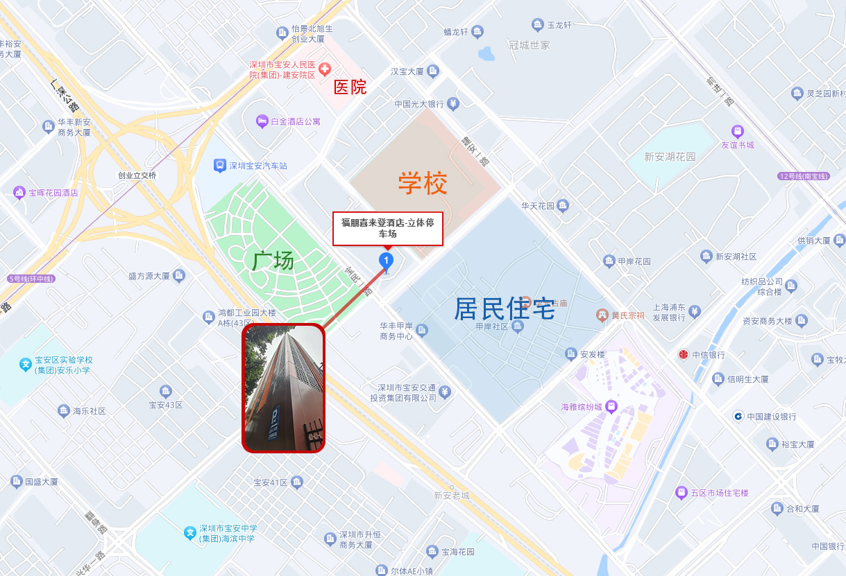 福朋喜來登立體停車場坐落于深圳市寶安區(qū)中心地帶,位于知名五星級酒店福朋喜來登的東南側(cè),新安中學(xué)西南側(cè),向東與甲岸社區(qū)(住宅小區(qū))相望。